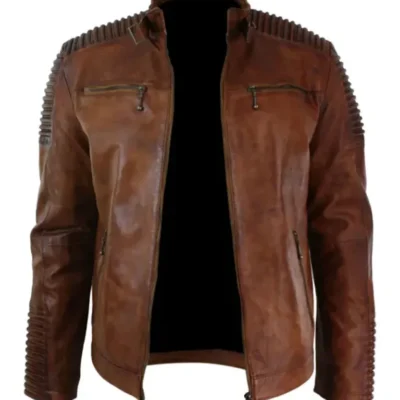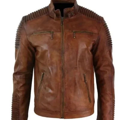 Cafe Racer Motorcycle Quilted Distressed Brown Leather Jacket