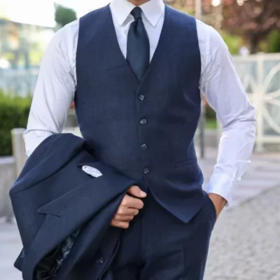 Men Slim Fit 3 Piece Navy Blue Suit