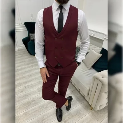 Men’s Burgundy 3 Piece Wedding Suit