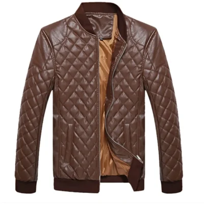 Mens Quilted Brown Leather Jacket